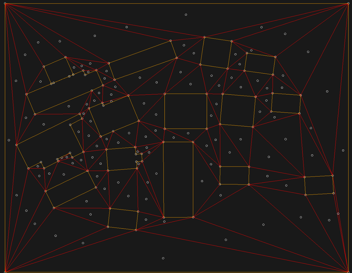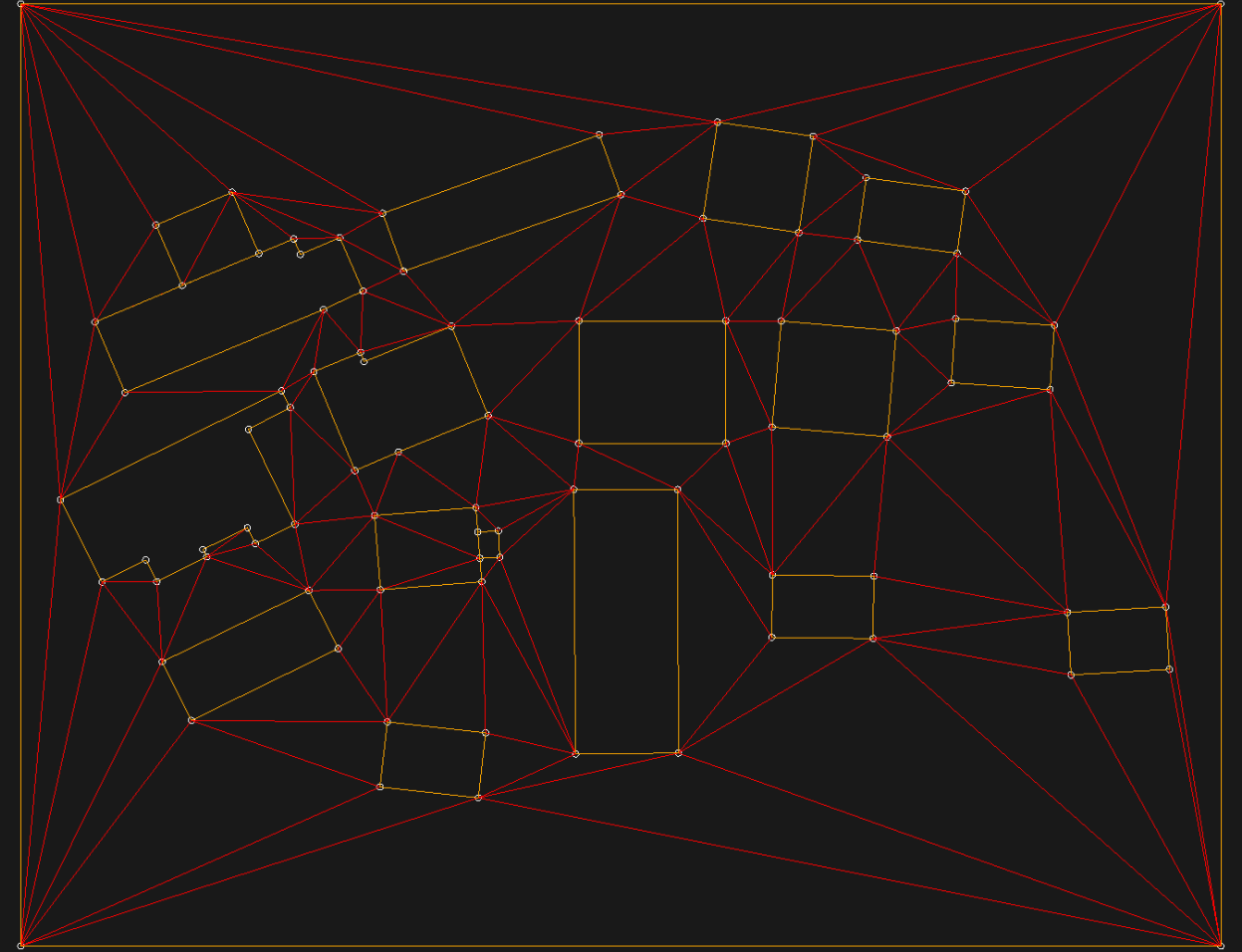 For the pathfinding implementation, I started by generating a navigation mesh from 2D points that were provided, while clipping the navmesh with the 2d geometry that was provided. Once I had the navmesh, I created a graph representation where each node corresponded to a navigable region.